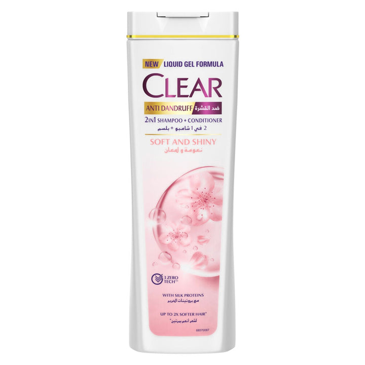 شامبو كلير للنساء الناعم واللامع هو أول تركيبة جل سائلة على الإطلاق بتقنية 3 زيرو تك، مصمم لإزالة القشرة والدهون والحكة تمامًا مع تخفيف تهيج فروة الرأس وحكة فروة الرأس. بفضل تركيبته الغنية ببروتينات الحرير، لا يزيل هذا الشامبو القشرة بفعالية فحسب، بل يغذي الشعر ويشكل حاجزًا واقيًا حول كل خصلة، ويحافظ على رطوبتها ويعيد حيويتها. كما أنه يعيد بناء طبقة الحماية السطحية للشعر، ويمنحه نعومة مضاعفة ولمعانًا لامعًا. مثالي للحفاظ على فروة رأس صحية وخالية من القشرة مع شعر جميل ولامع.