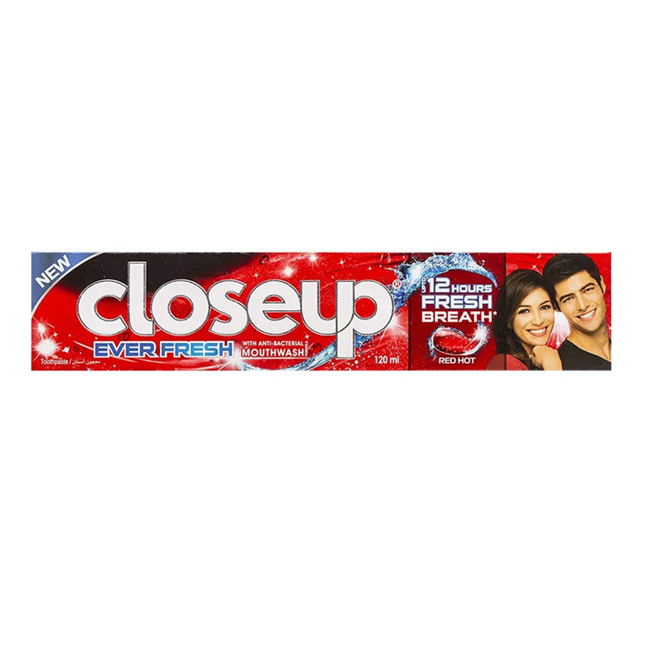 معجون أسنان كلوز أب تريبل فريش جل - ريد هوت، مُصمم ليمنحكِ انتعاشًا قويًا، ويترك فمكِ نظيفًا وأنفاسكِ منتعشة لمدة تصل إلى ١٢ ساعة. يجمع هذا المعجون بين قوة تركيبة غسول الفم المضادة للبكتيريا ونكهة ريد هوت المنعشة، مما يضمن لكِ انتعاشًا يدوم طويلًا، لتتمكني من التواصل مع أي شخص بثقة. مع الاستخدام المنتظم، يساعد معجون كلوز أب على الحماية من تراكم البكتيريا ورائحة الفم الكريهة، ويمنحكِ ابتسامة مشرقة وواثقة. استمتعي بشعور الانتعاش والثقة بابتسامة بيضاء طبيعية في كل مرة تنظفين فيها أسنانكِ بالفرشاة.