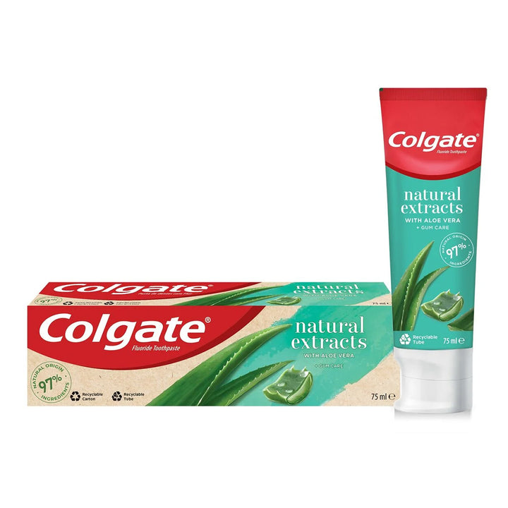 معجون أسنان كولجيت بخلاصات طبيعية من الصبار والشاي الأخضر يُضفي شعورًا بالانتعاش والهدوء على لثتك. تركيبته الطبيعية تُساعد على الحفاظ على صحة لثتك مع شعور بالنظافة والانتعاش في الفم. يعمل مزيج الصبار والشاي الأخضر اللطيف على العناية بلثتك وتعزيز صحة فمك بشكل عام.