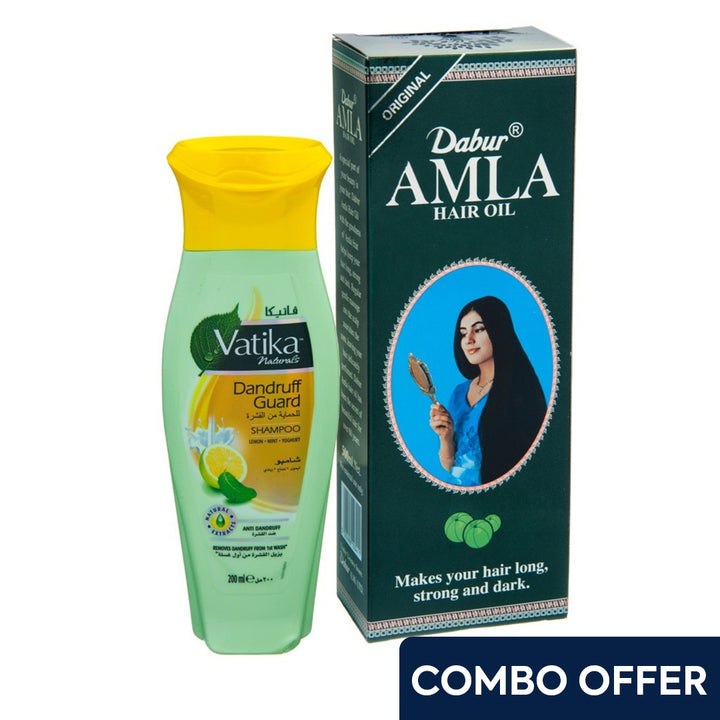 زيت دابر أملا للشعر (500 مل) وشامبو فاتيكا للكثافة والكثافة (200 مل) هما الخيار الأمثل لتغذية شعركِ وتقويته ومنحه كثافة. زيت دابر أملا للشعر غني بفوائد الأملا، التي تقوي الشعر من الجذور، وتعزز نموه الصحي، وتمنع الشيب المبكر. شامبو فاتيكا للكثافة والكثافة، الغني بجوز الهند والخروع، يساعد على تنظيف الشعر ومنحه كثافة، ويمنحه لمعانًا طبيعيًا. يعمل هذان المنتجان معًا بتآزر لتغذية فروة الرأس، وزيادة كثافة الشعر الخفيف، ومنحه لمعانًا صحيًا وجميلًا. كلا المنتجين مصنوعان من مكونات طبيعية، مما يجعلهما لطيفين على البشرة ومناسبين للاستخدام اليومي.