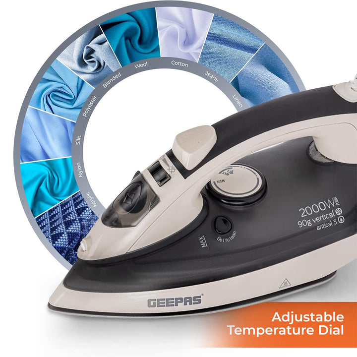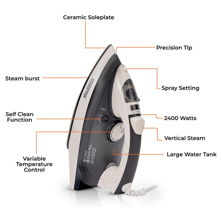 صُممت مكواة البخار الخزفية GSI7788 من جيباس للكي السريع والفعال والآمن على مختلف أنواع الأقمشة. مزودة بعنصر تسخين قوي بقوة 2000 واط ، وتتميز بقاعدة سيراميك ناعمة تنزلق بسلاسة على الملابس مع توزيع الحرارة بالتساوي لإزالة التجاعيد الصعبة بسهولة.