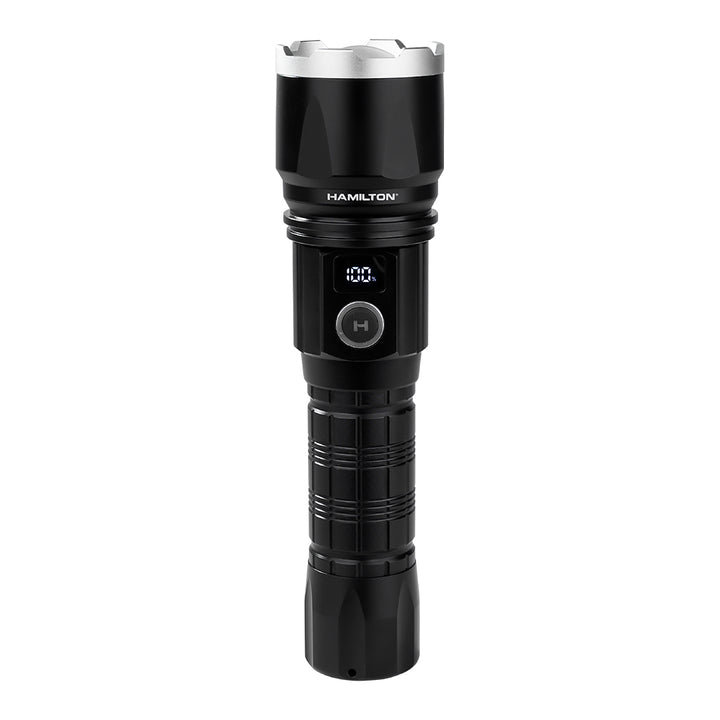 هاميلتون HT-9968 مصباح LED يدوي عالي الأداء وقابل للتكبير والتصغير، مقاوم للماء ، مصمم ليوفر متانة عالية وإضاءة قوية في الهواء الطلق. مصنوع من هيكل من الألومنيوم عالي الجودة المستخدم في صناعة الطائرات وزجاج غير قابل للكسر ، ويوفر سطوعًا يصل إلى 1800 لومن باستخدام مصباح LED HP70 بقدرة 25 واط، ويصل مدى شعاعه إلى 2000 متر . يتميز بخمسة أوضاع إضاءة (عالي، متوسط، منخفض السطوع، فلاش، SOS)، وشاشة رقمية ، وحماية ذكية للبطارية ، مما يوفر الموثوقية والوظائف المتقدمة. يعمل ببطارية 26650 3.7 فولت 6000 مللي أمبير/ساعة ، ومنفذ شحن من النوع C ، ويدوم حتى 6 ساعات ، وهو مثالي للتخييم والإنقاذ والاستخدام في حالات الطوارئ.