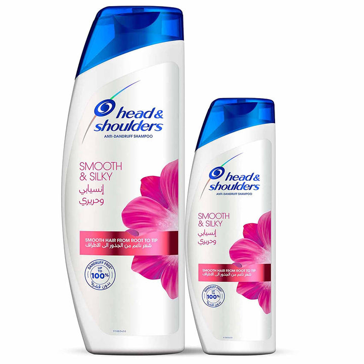 شامبو هيد آند شولدرز "سموث آند سيلكي" المضاد للقشرة، متوفر بعبوة اقتصادية سعة 700 مل + 400 مل، يزيل القشرة بنسبة تصل إلى 100%، ويرطب الشعر الجاف والمجعد بكثافة لمدة تصل إلى 24 ساعة. يترك هذا الشامبو القوي شعرك ناعمًا كالحرير من الجذور إلى الأطراف، ويتحكم في التقشر والقشرة من أول استخدام. تركيبة مثبتة سريريًا، غنية ببيروكتون أولامين، وهو مكون فعال يحارب الميكروبات المسببة للقشرة، متوازنة الحموضة ومناسبة لجميع أنواع الشعر. يتميز بقوام كريمي ورائحة خفيفة ومنعشة، ليمنحكِ الشامبو الأول عالميًا المضاد للقشرة، والذي تم اختباره من قبل أطباء الجلدية لضمان سلامته.