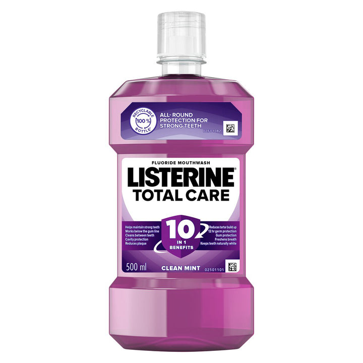 يقدم غسول الفم ليسترين توتال كير بنكهة النعناع المنعش ست فوائد فعّالة لصحة الفم والأسنان. فهو لا يساعد فقط على منع تسوس الأسنان وتقويتها، بل يقلل أيضًا من التهاب اللثة ويحافظ على صحتها. كما أنه يحارب البكتيريا بين الأسنان، ويوفر حماية من رائحة الفم الكريهة لمدة تصل إلى ٢٤ ساعة. حافظ على انتعاش ونظافة فمك مع هذا الحل الشامل للعناية بالفم.