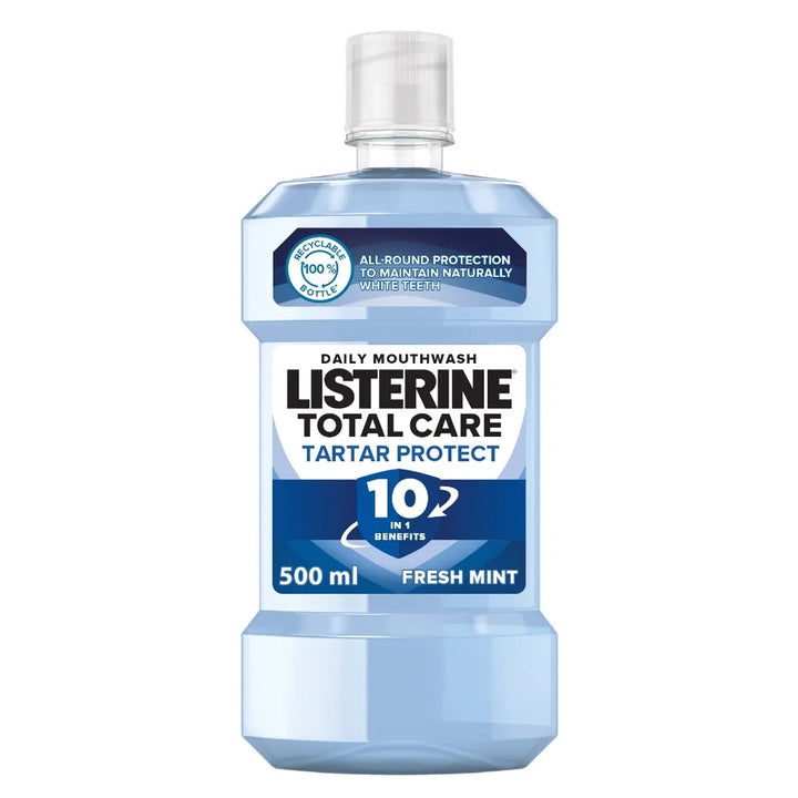 امنح فمك الحماية الشاملة التي يستحقها مع غسول الفم ليسترين توتال كير بنكهة النعناع المنعش. هذا الغسول مصمم خصيصًا ليمنع تراكم الجير، ويساعد في الحفاظ على نظافة الفم، ويعزز صحة اللثة. تركيبته القوية مع الزيوت العطرية الطبيعية ومكونات مضادة للبكتيريا توفر فمًا نظيفًا ومنتعشًا يدوم طويلًا، ويحمي من التسوس والبلاك ورائحة الفم الكريهة. استمتع بفم منعش وصحي طوال اليوم!