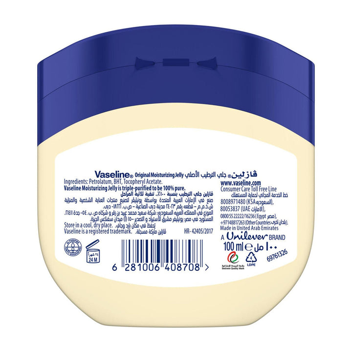 فازلين الأصلي المرطب، متوفر بعبوة سعة 100 مل، وهو حل أساسي للبشرة الجافة والمتشققة. تُشكّل هذه التركيبة المميزة حاجزًا واقيًا يحبس الرطوبة داخل البشرة، مما يُساعدها على التعافي وإصلاح نفسها. من خلال دعم عملية الشفاء الطبيعية للبشرة، يُخفف فازلين بفعالية من الجفاف والانزعاج. مثالي للاستخدام على اليدين والقدمين والمرفقين والكعبين وغيرها من المناطق المُصابة، يُوفر هذا المنتج متعدد الاستخدامات ترطيبًا وحمايةً طويلي الأمد.