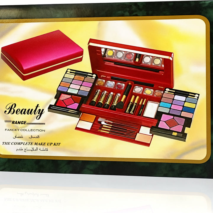 • Complete Makeup Kit: Contains eye shadow, blusher, compact powder, lip gloss, lipstick, foundation cream, glitter, loose powder, mascara, eye pencil, and lip pencil.