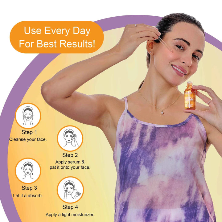 2. Apply a few drops of Dr. Rashel Vitamin C Face Serum on moist skin using your fingertips.
