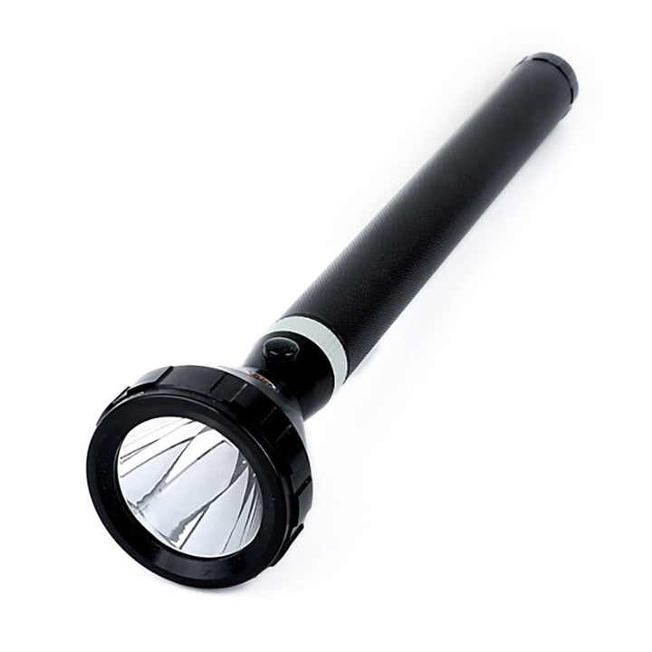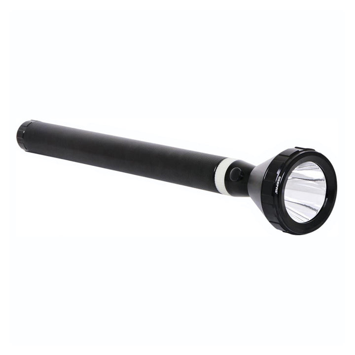 The Geepas GFL4653 Rechargeable LED Flashlight is a high-intensity, long-range torch built for maximum performance and reliability. With a real beam range of up to 5000 meters and a powerful 3-watt CREE cool white microchip LED, it delivers superior brightness and clarity. Constructed with a machined aircraft-grade aluminum body and anodized finish, this flashlight is both shockproof and corrosion-resistant. It runs on a durable 5000mAh NI-CD 6.0V battery that supports up to 5 hours of continuous use and is built to withstand multiple recharges.